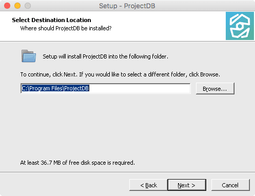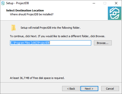 1.2.2.6. In the appeared window, specify the path to the installation file ProjectDB_Setup.exe;