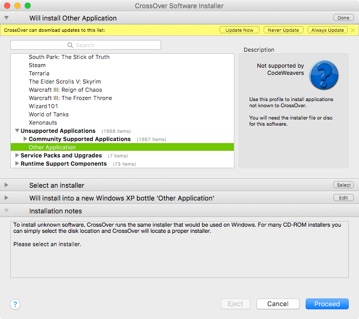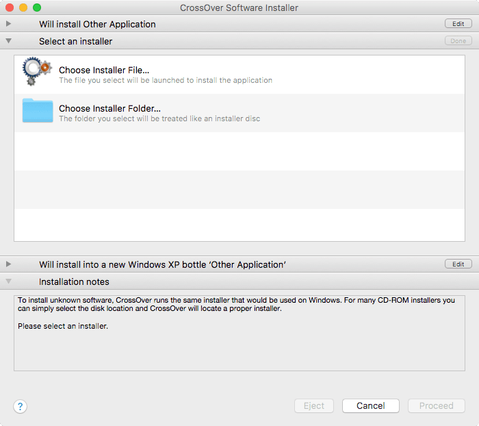 1.2.2.1. Download and install CrossOver at www.codeweavers.com;