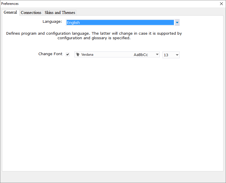 The program allows you to choose language, style of icons, theme and skin from the list or add your own, specifying the path to the files.