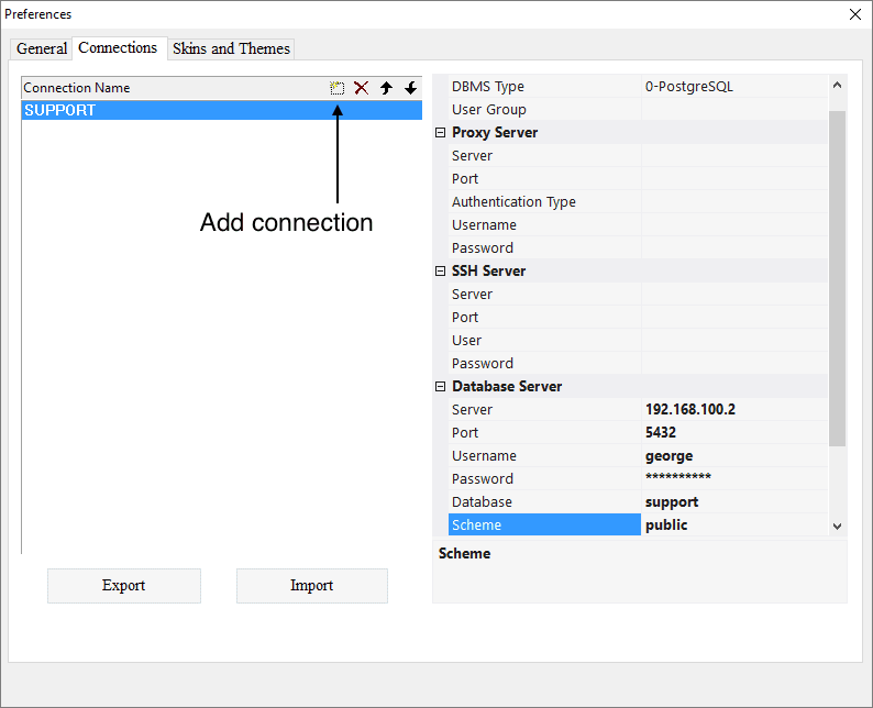 1.5.1.7. In the field Port of the section Database Server type in the port of a selected server (default - 5432);