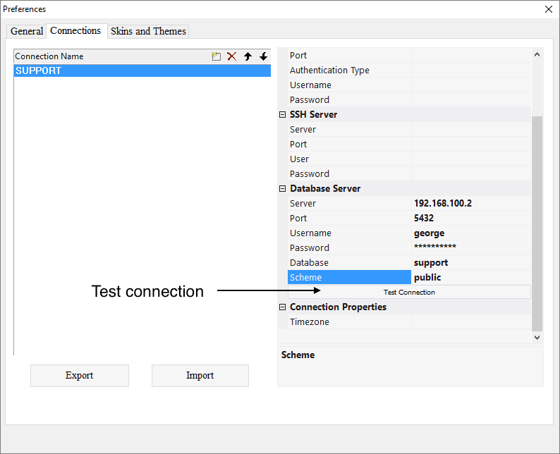 1.5.1.10. In the field Database of the section Database Server type in support;