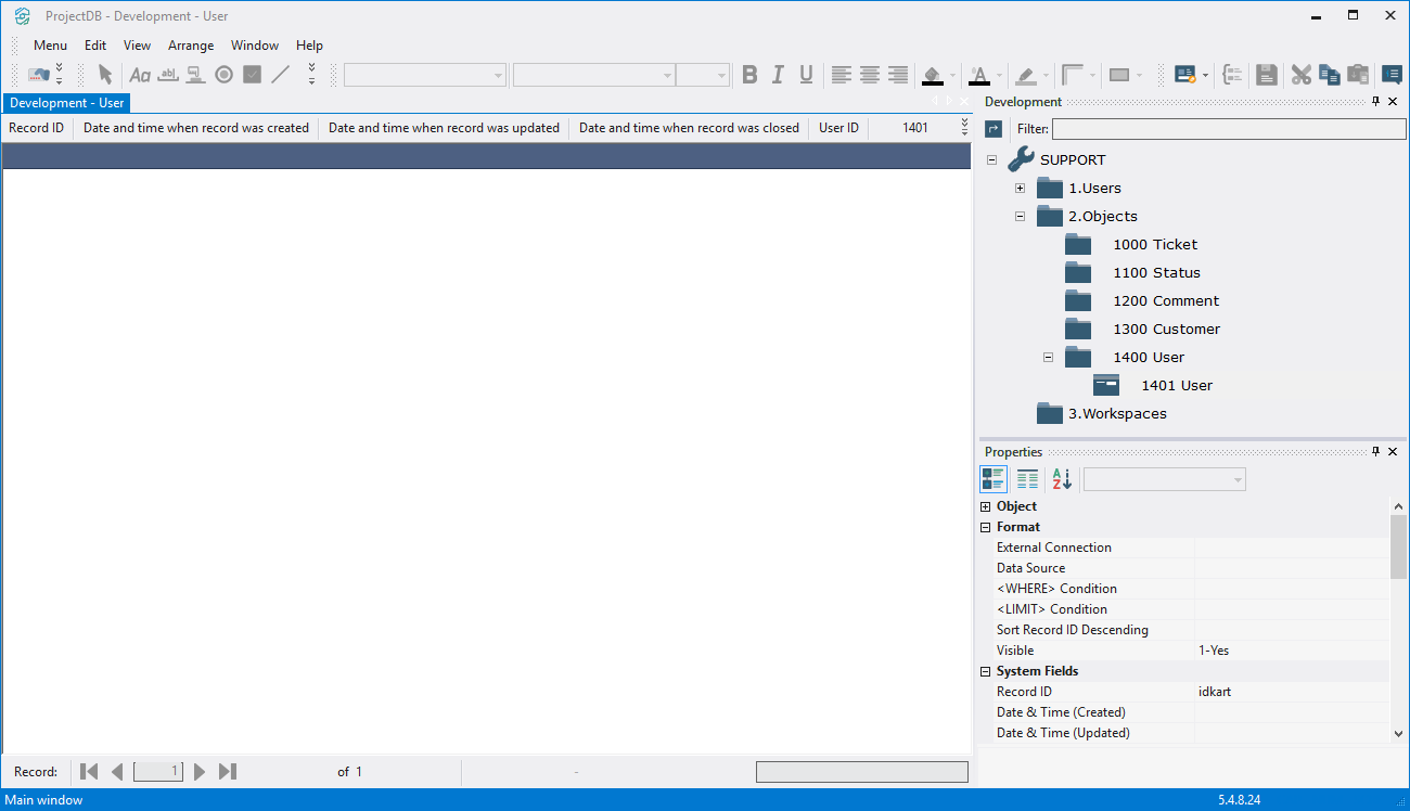 It's time to create the first object - a table for storing and displaying information about users that will use the system. For convenience we divide the task into simpler steps: