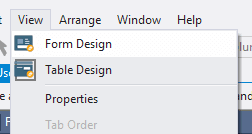 2.5.3.1. Go to Form Design by selecting View > Form Design, or by pressing the appropriate button in the toolbar;