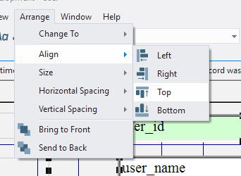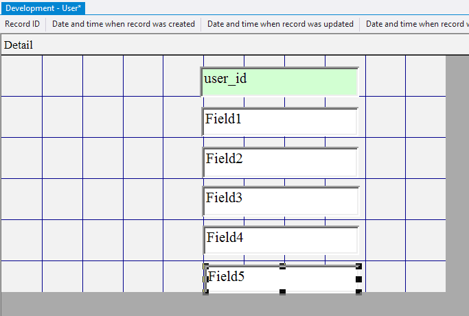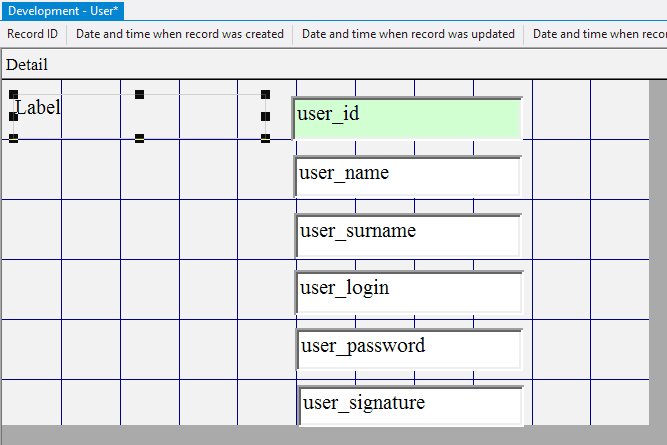 2.5.3.14. Press the left mouse button and, without releasing it, outline the size of label so that the label is left to the field user_id;