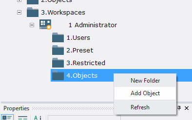 3.2.1.1. Open the context menu by right-clicking on folder 4.Objects;