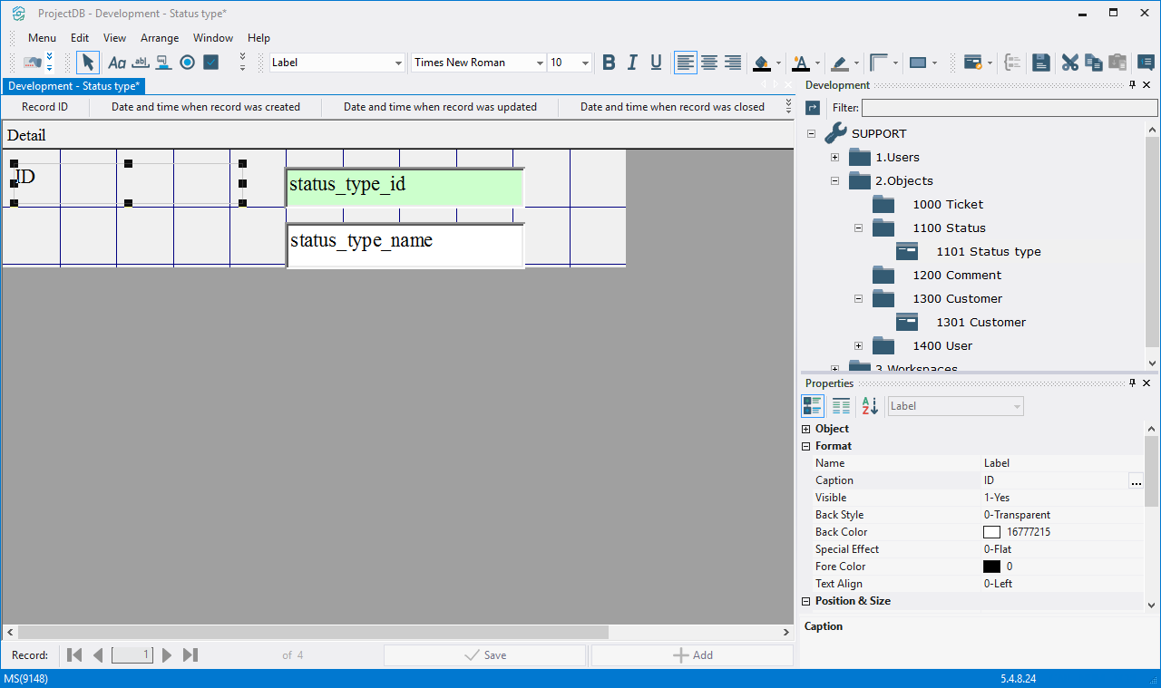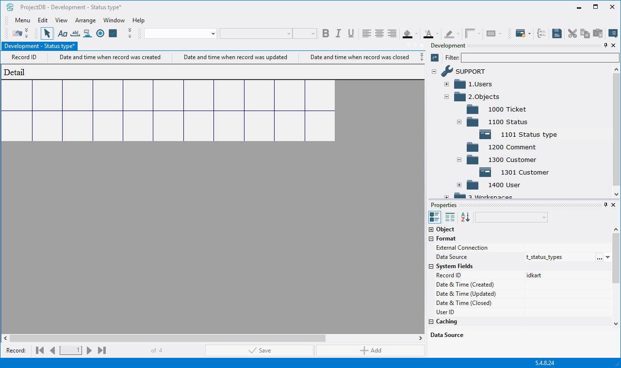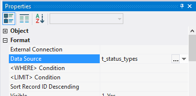 4.3.3.2. In the field Data Source choose database object - t_status_types;