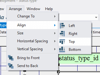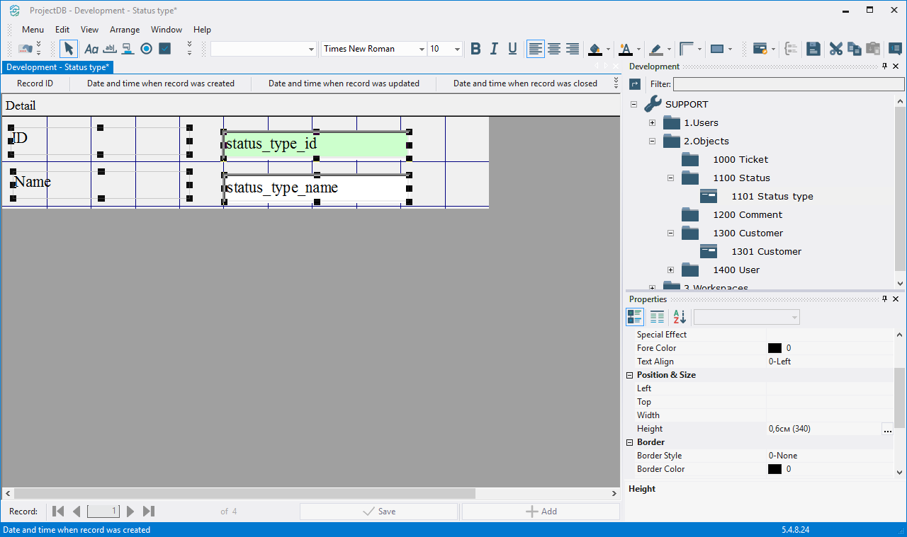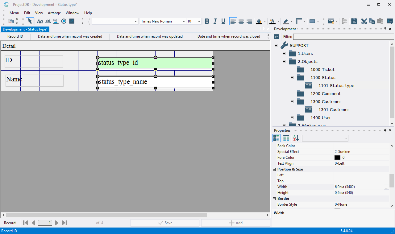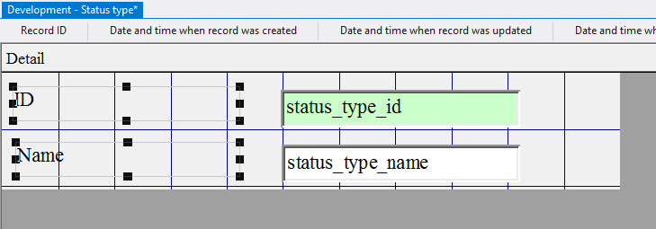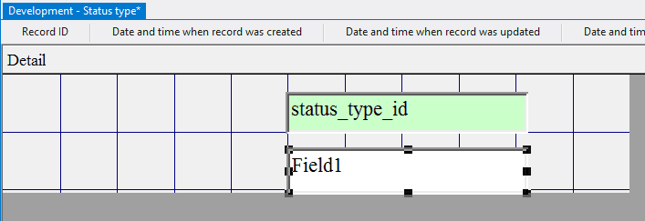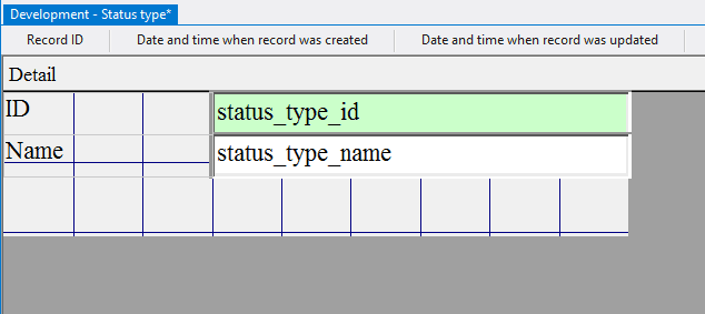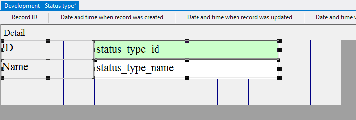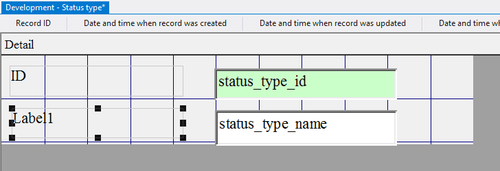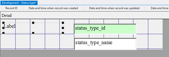 4.3.3.14. Press the left mouse button and, without releasing it, outline the size of label so that the label is left to the field status_type_id;