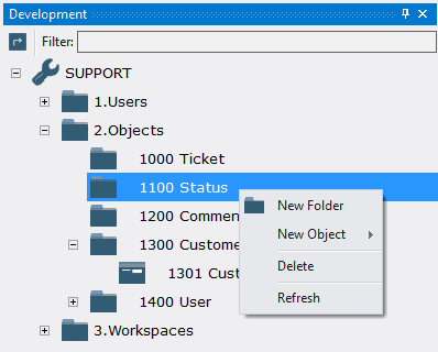 4.3.1.1. Open the context menu by right-clicking on the folder 1100 Status;