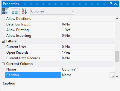 4.3.2.5. Select each column by clicking the left mouse button on any line of the table, specify in the field Caption the displayed name of the column - ID, Name respectively;