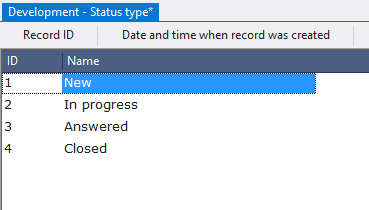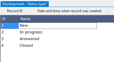 Let’s create several objects in a row. The next will be a table for storing status types.