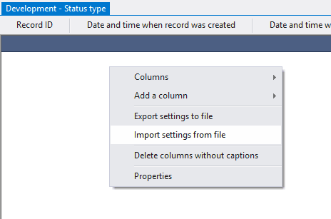 4.3.2.4. Open the context menu by right-clicking in the empty space of the object, choose Add a column and select columns status_type_id, status_type_name;