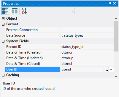 4.3.2.3. In system fields Record ID, Date & Time (Created), Date & Time (Updated), Date & Time (Closed), User ID, select accordingly fields user_id, dttmcr, dttmup, dttmcl, userid;