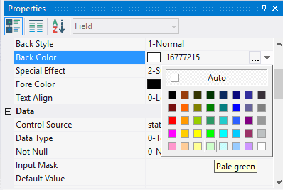 4.3.3.9. In the field Back Color choose a background color;