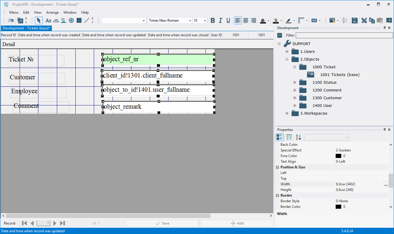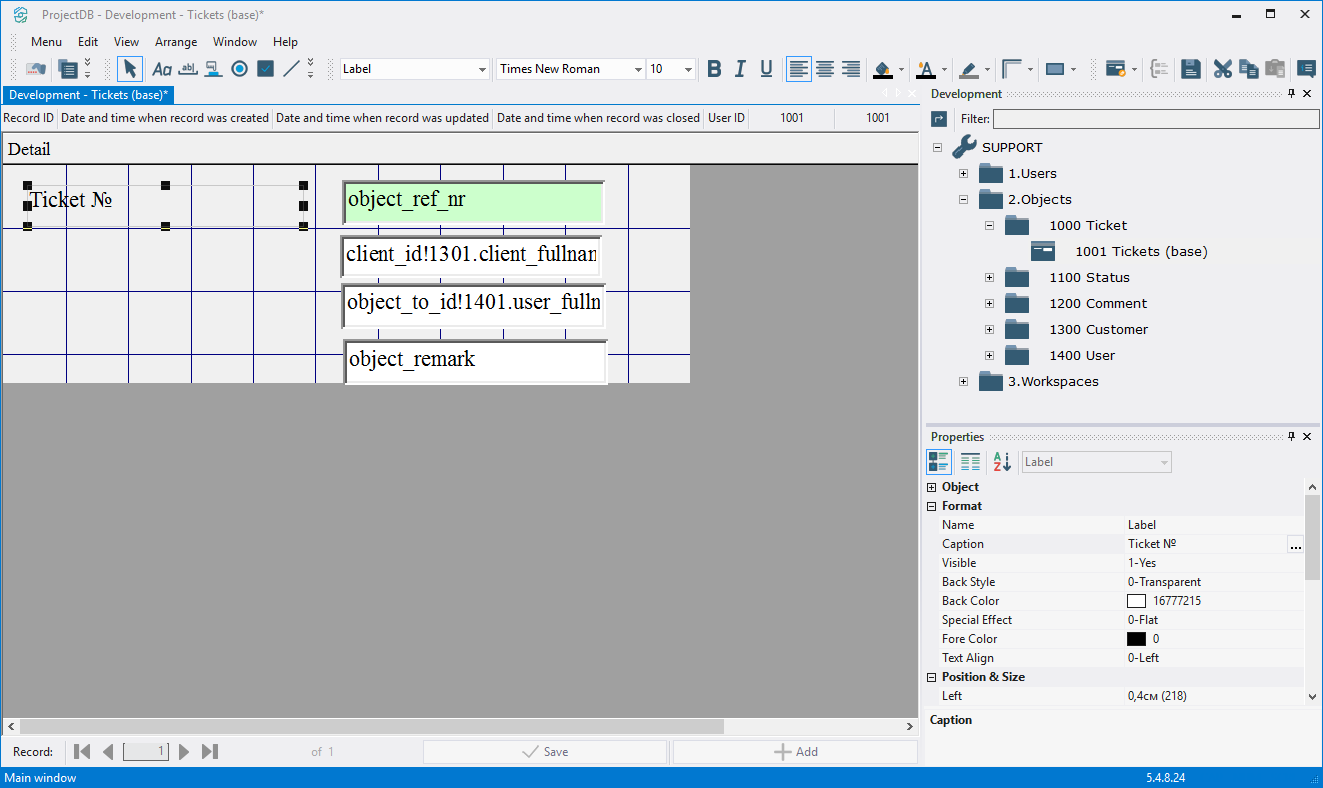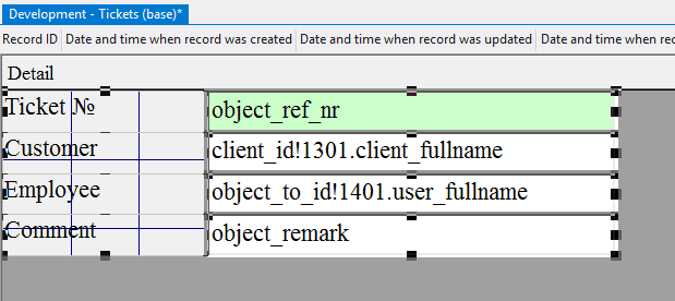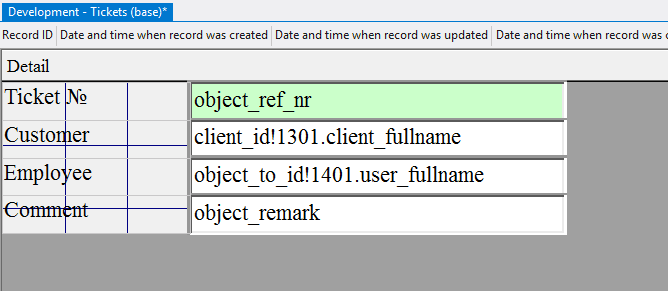 5.2.2.1. Open object 1001 Tickets (base) for modification by double-clicking the left mouse button;
