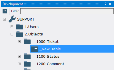 5.2.1.3. In the Configuration Development window, in the Connection field, select the SUPPORT connection;
