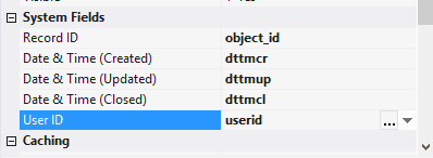 5.2.2.3. In system fields Record ID, Date & Time (Created), Date & Time (Updated), Date & Time (Closed), User ID, select accordingly fields user_id, dttmcr, dttmup, dttmcl, userid;