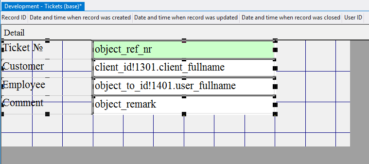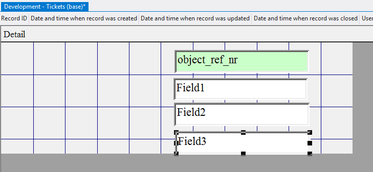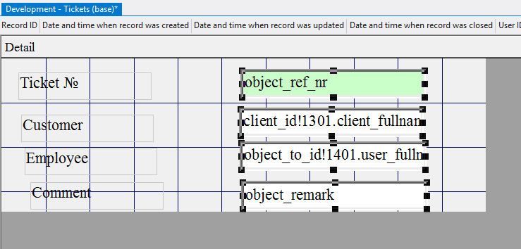 5.2.3.23. Press the left mouse button and, without releasing it, outline the size of label so that the label is left to the field object_ref_nr