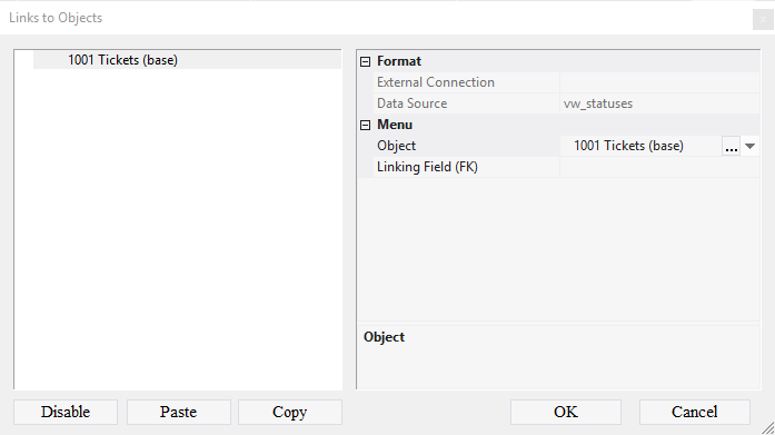 6.2.2.4. In the Object field, select the defining object 1001 Tickets (base)