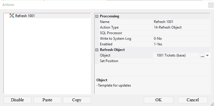 6.4.1.10. In the Action Type field select 14-Refresh Object from the drop-down list;