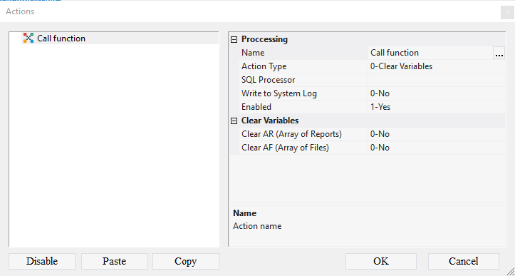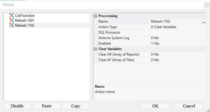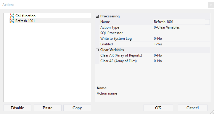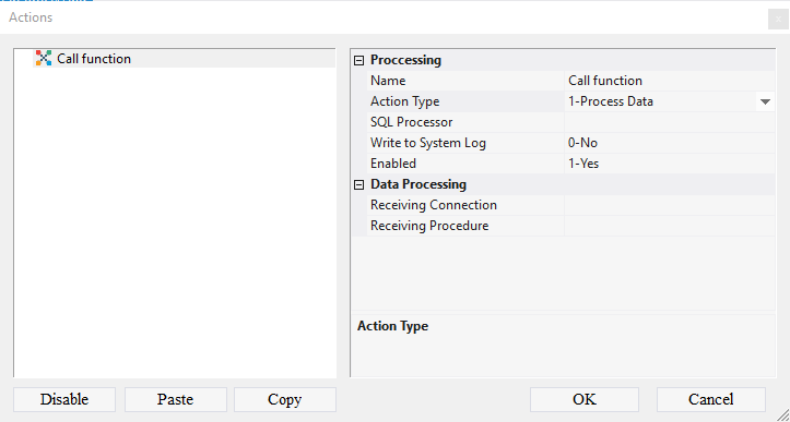 7.4.1.8. In the Action Type field, select 1-Process data from the drop-down list;