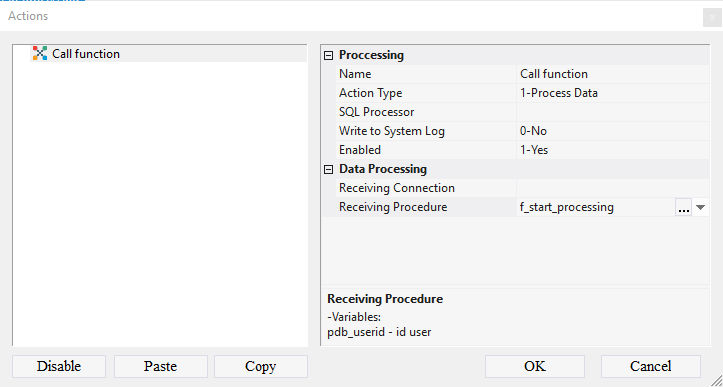 7.4.1.9. In the Receiving Procedure field, select f_start_processing from the drop-down list;