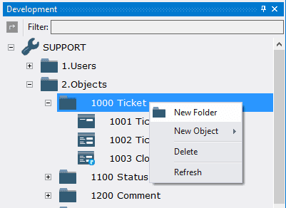 7.4.1.1. Call the context menu of the folder 1000 Ticket;