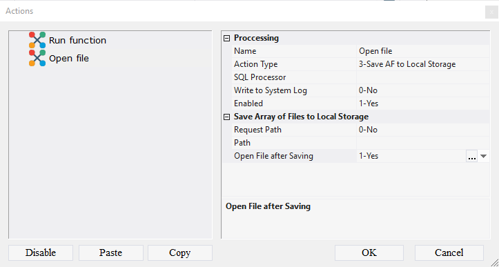 8.3.1.15. In the Open File after Saving field, specify 1-Yes;