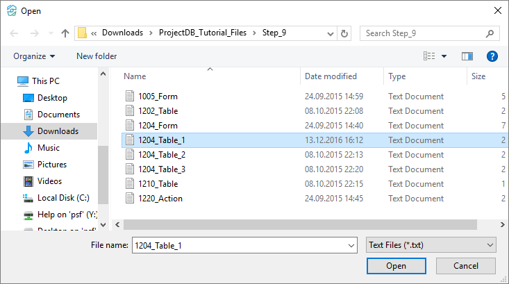 9.2.2.18. In the appeared window specify the path to the file 1204_Table_1;