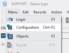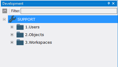 9.2.1.3. In the Configuration Development window, in the Connection field, select the SUPPORT connection;