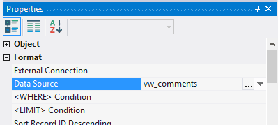 9.2.2.2. In the field Data Source specify the object - vw_comments;