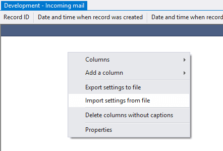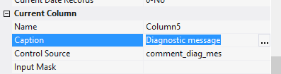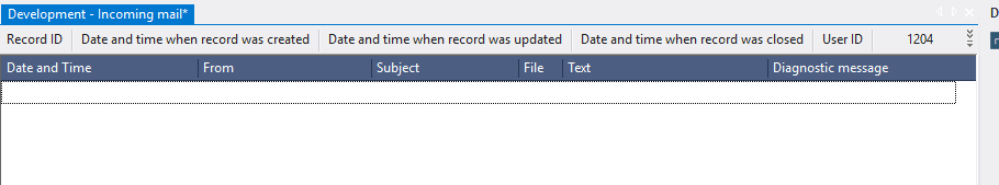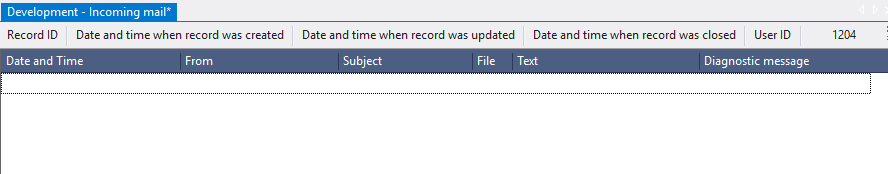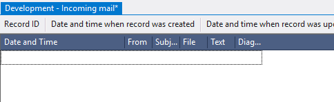 9.2.2.5. Select each column by clicking the left mouse button on any line of the table, specify in the field Caption the displayed name of the column - Date and Time, From, Subject, File, Text, Diagnostic message accordingly;