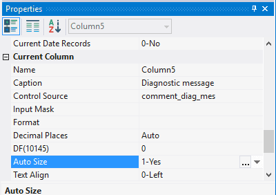 9.2.2.9. Select the last column and in the field Auto Size specify the value 1-Yes - column size will vary depending on the free space of the screen;