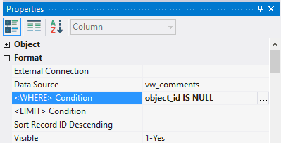 9.2.2.13. In the <WHERE> Condition field, specify the value object_id IS NULL;