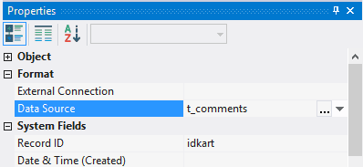 9.2.3.2. In the field Data Source choose database object - t_comments;