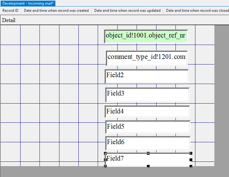 9.2.2.3. In system fields Record ID, Date & Time (Created), Date & Time (Updated), Date & Time (Closed), User ID, select accordingly fields file_id, dttmcr, dttmup, dttmcl, userid;