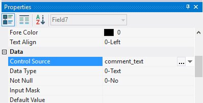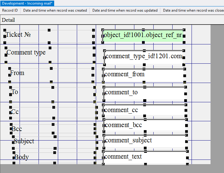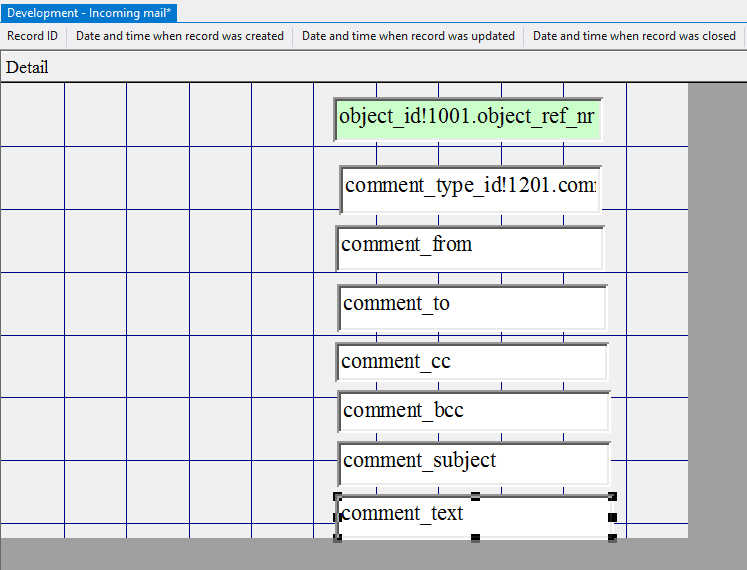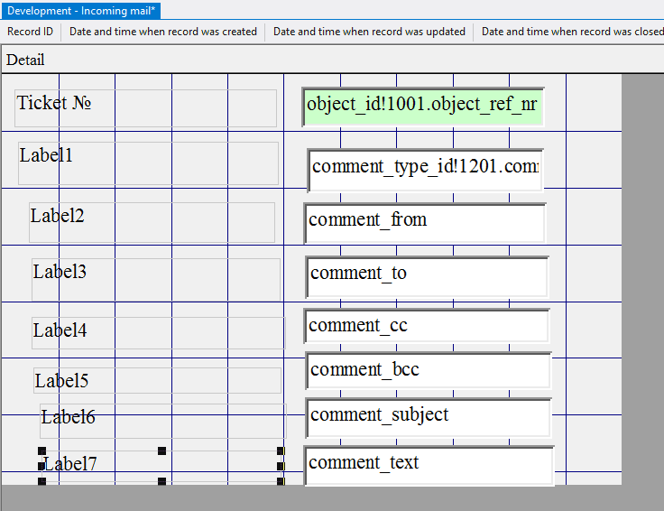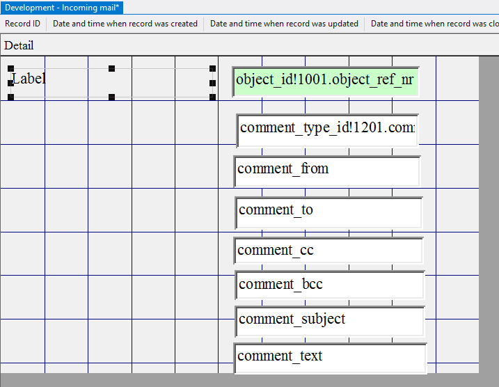 9.2.3.17. In the Control Source field for each added, choose accordingly comment_from, comment_to, comment_cc, comment_bcc, comment_subject, comment_text;