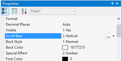 9.2.3.35. Select the field comment_text - this field will occupy the remaining free space when working in the form and store multi-line text, so you should allow the text to scroll vertically by setting the Scroll Bars field to 2-Vertical;
