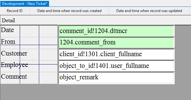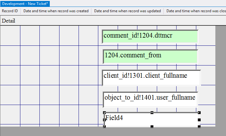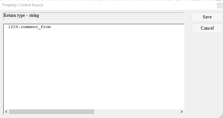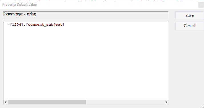 9.5.1.30. In the window that opens, enter the value =[1204].[comment_subject];