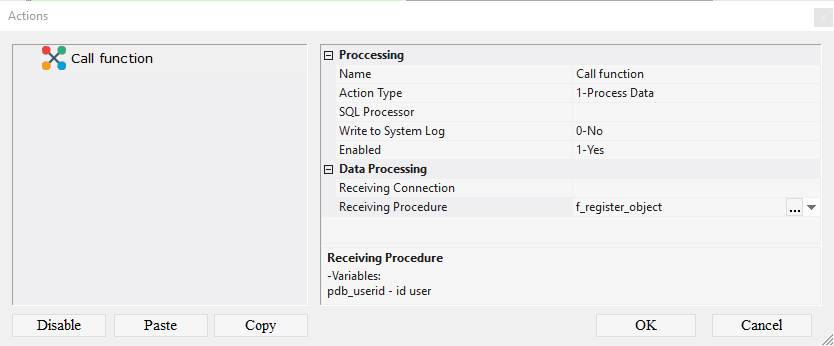 9.5.1.61. In the Receiving Procedure field, select the procedure f_register_object;