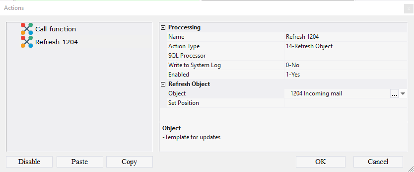 9.5.1.65. In the Action Type field select 14-Refresh Object;