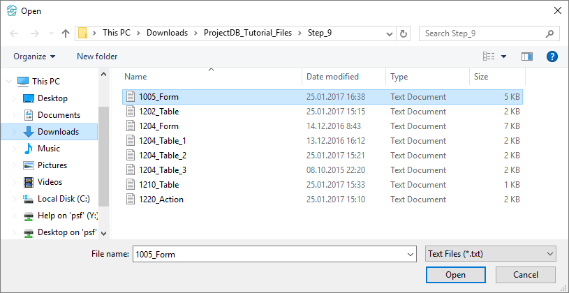 9.5.1.72. In the appeared window, specify the path to the file 1005_Form;