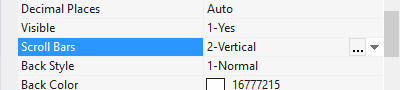 9.5.1.49. Select the field object_remark - this field will occupy the remaining free space when working in the form and store multi-line text, so you should allow the text to scroll vertically by setting the Scroll Bars field to 2-Vertical;