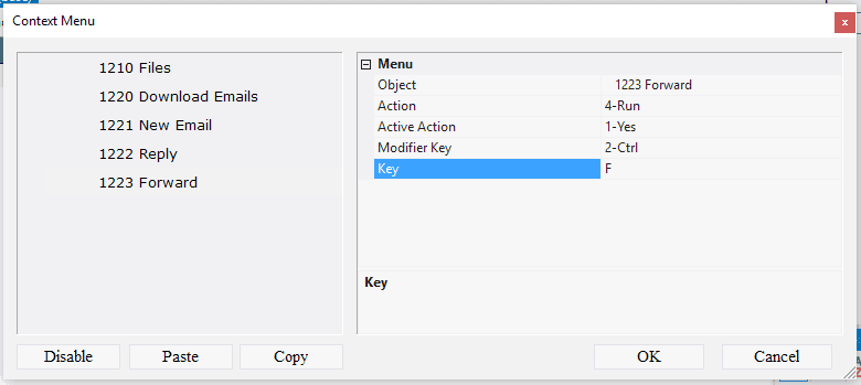 10.5.1.23. In the Key field enter the letter F on the English keyboard layout;