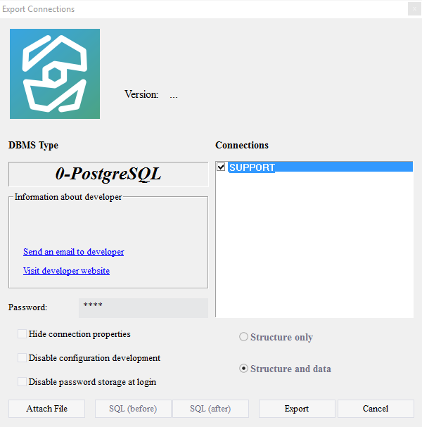 1.6.1.2. In the right pane of the window Export Connections check required connection (in this case SUPPORT);