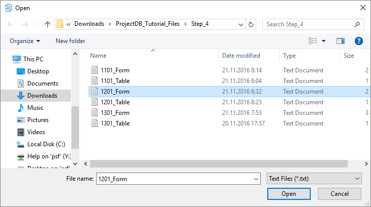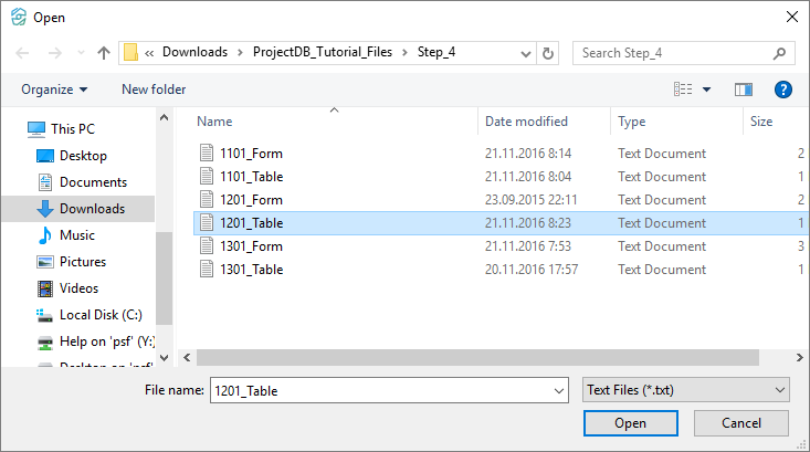 4.4.2.15. In the appeared window specify the path to the file 1201_Table;