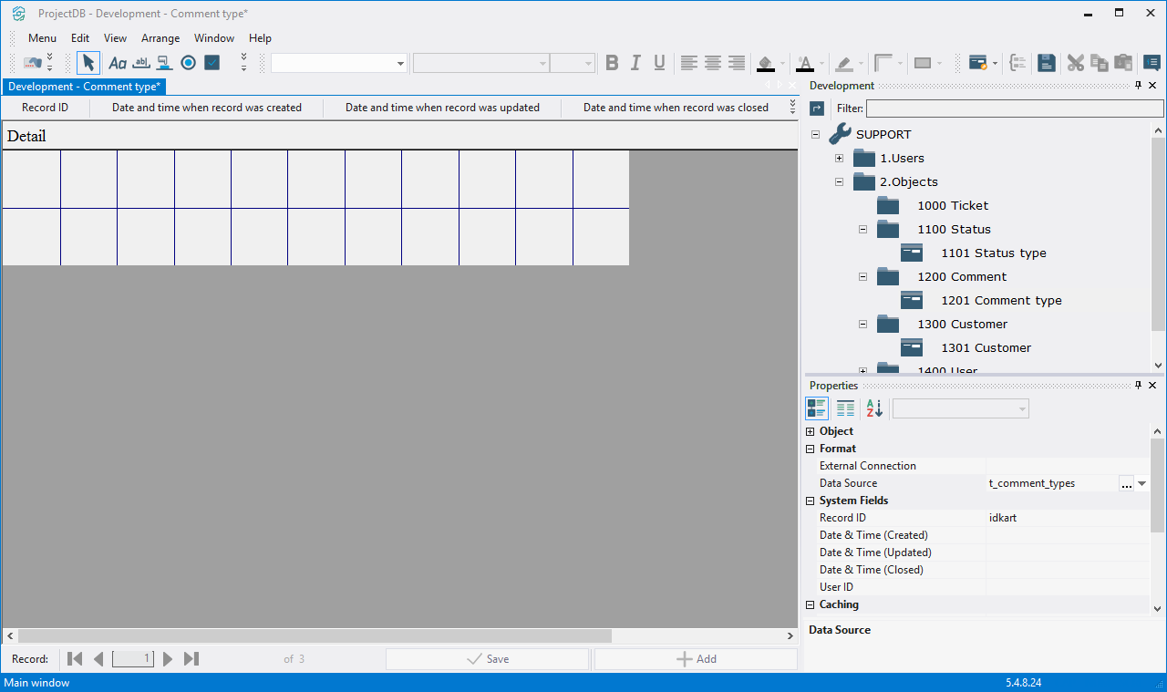 4.4.2.2. In the field Data Source specify the object - t_comment_types;