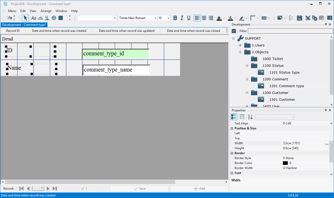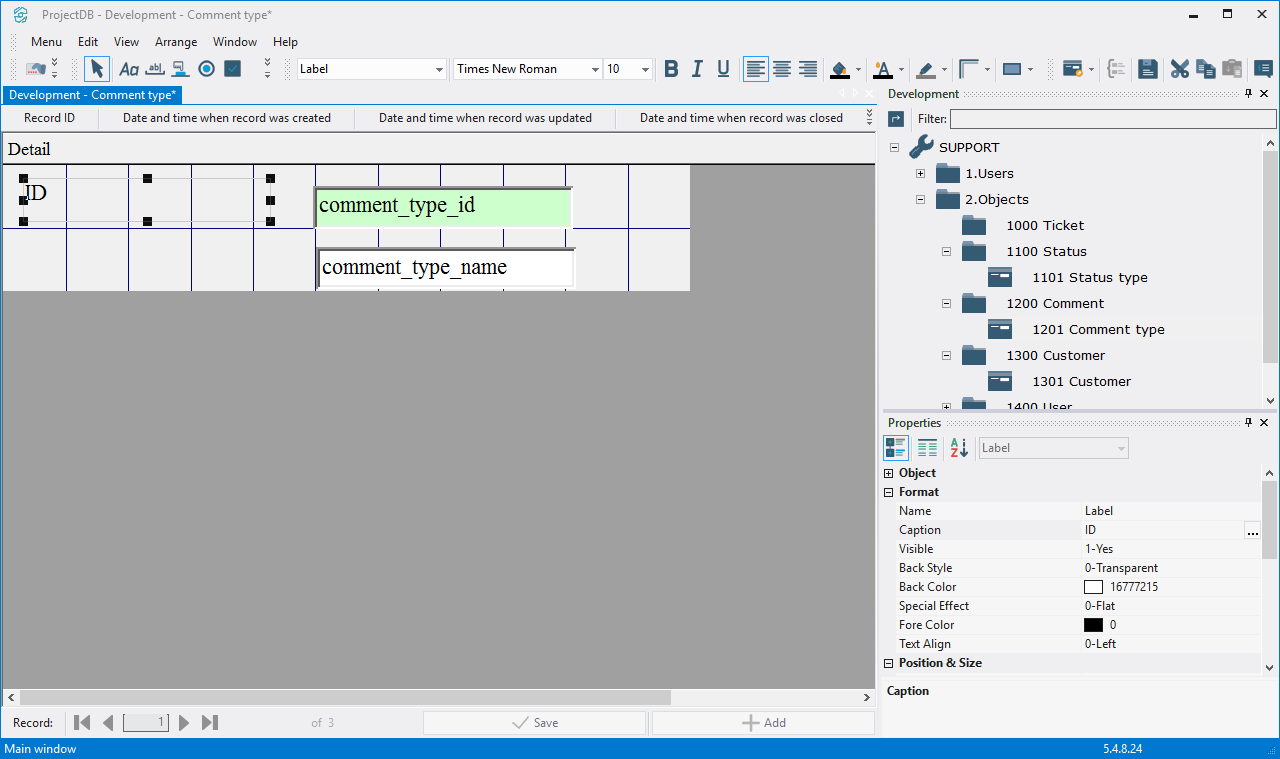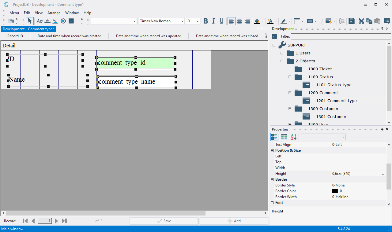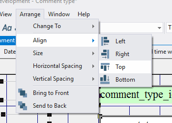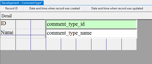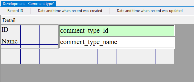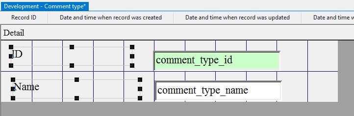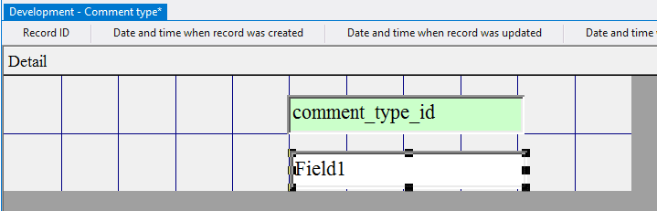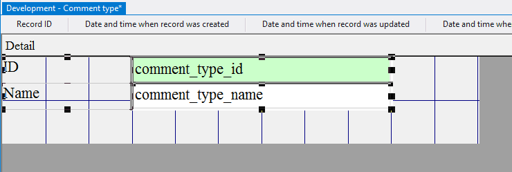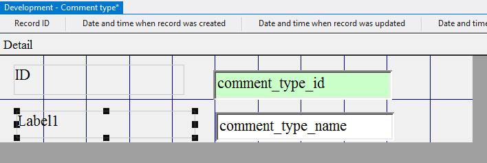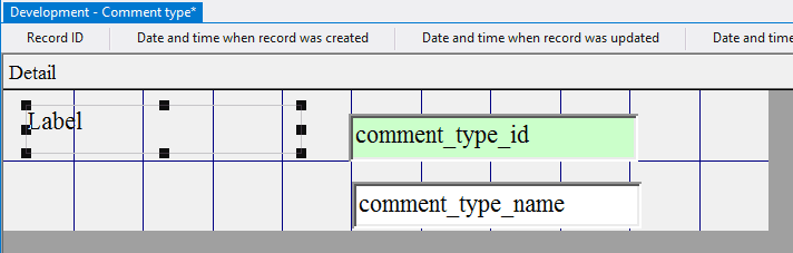 4.4.3.14. Press the left mouse button and, without releasing it, outline the size of label so that the label is left to the field comment_type_id;