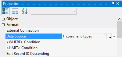 4.4.3.2. In the field Data Source choose database object - t_comment_types;