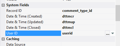 4.4.3.3. In system fields Record ID, Date & Time (Created), Date & Time (Updated), Date & Time (Closed), User ID choose fields from the table - client_id, dttmcr, dttmup, dttmcl, userid;