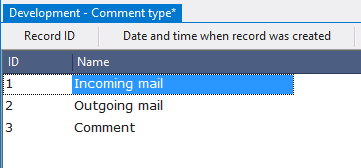 The last object at this stage will be a table for storing comment types.